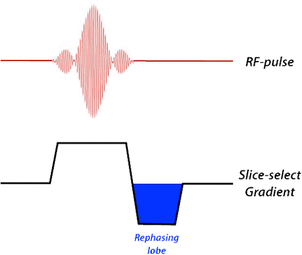 Note 2: The range of frequencies induced by the gradient in the z direction will cause dephasing of the precession, so a short negative gradient in z must subsequently be added to bring the precessions in phase again.